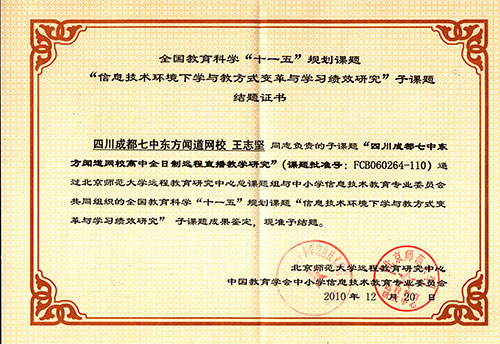 2011年12月,四川省教学专家查有梁教授在以"全日制远程直播教学模式下远端班主任工作研讨"为主题的第八届全日制远程直播教学研讨会上就《从教学效率看远程教学》进行了专题演讲。